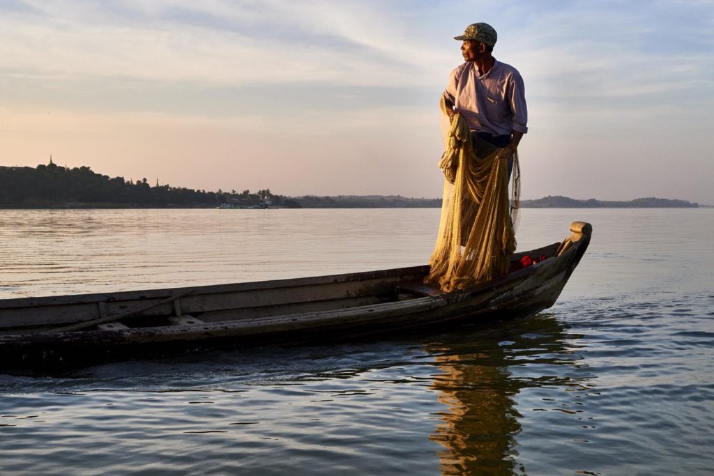 Our Introduction 1-Day Tour is a full-day boat excursion in the southern part of the Ayeyawaddy Dolphin Protected Area in search of dolphins. The trip includes an introduction to dolphins and the tradition of cooperative fishing, where local fishermen demonstrate how they communicate and fish together with dolphins. The program includes a visit to a fishing village where you will enjoy lunch prepared by the community and learn about their life along the Ayeyawaddy River. The tour starts and ends in Mandalay, with a short, optional visit to Mingun Stupa on the way back.